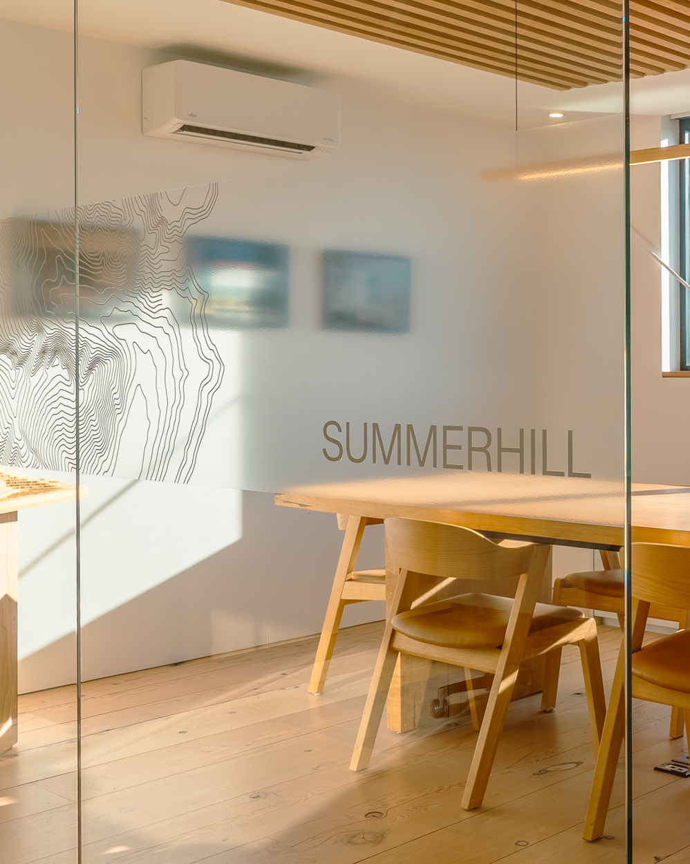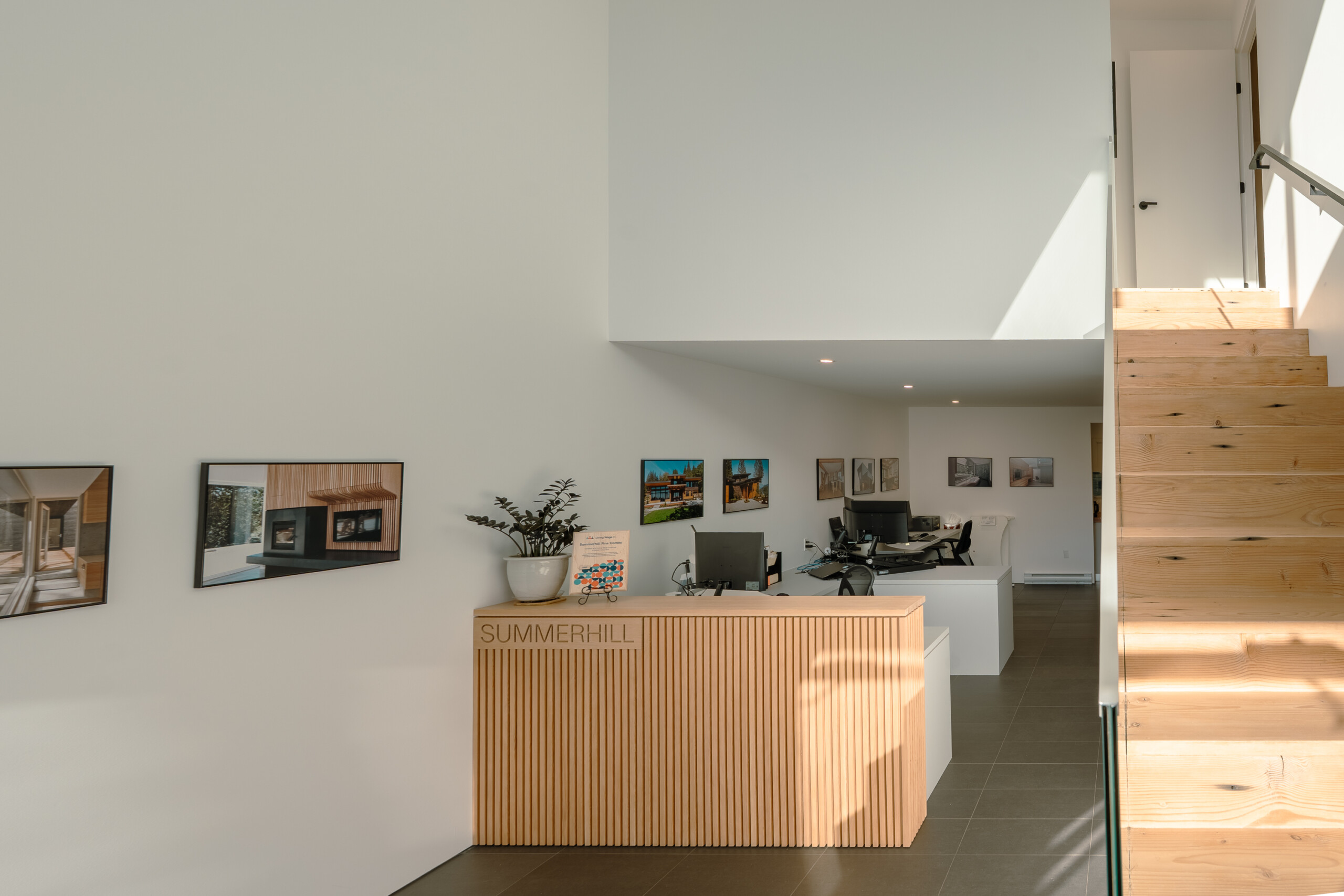 Summerhill Fine Homes HQ is our own design-build case study in the use of space, light, and reclaimed materials to their highest potential. Centred on wide-plank reclaimed old-growth Douglas fir sourced from the beams and columns of a demolition site in Vancouver and reborn as flooring, the office embodies our commitment to giving quality materials a second life and building for longevity.