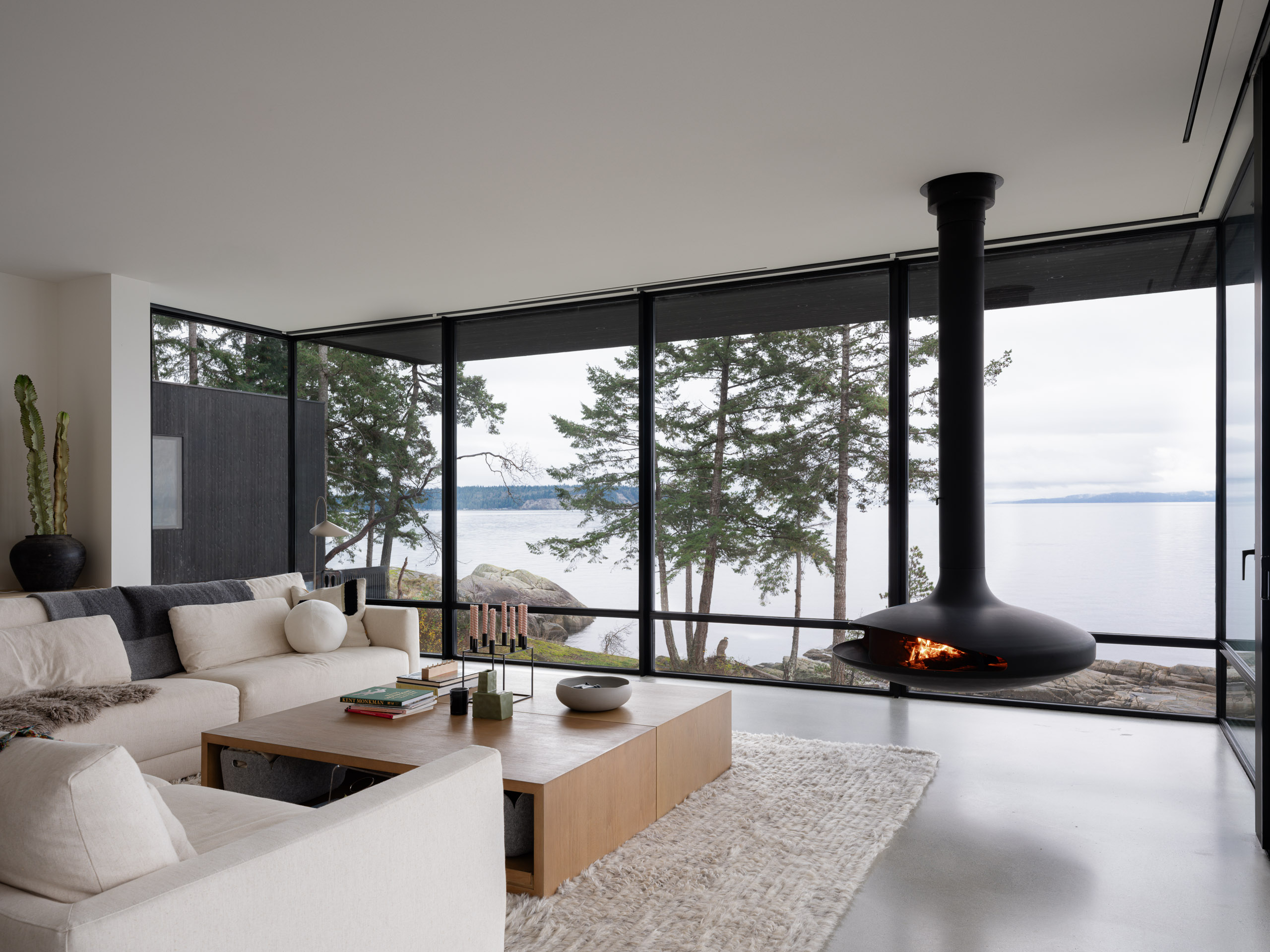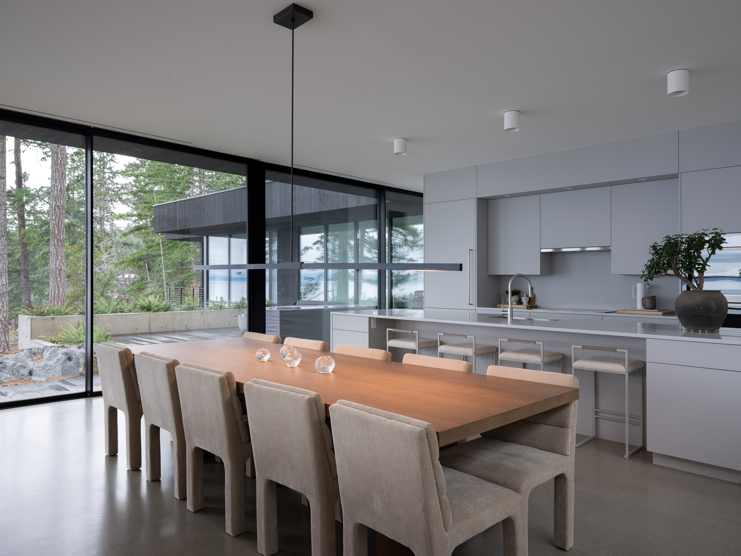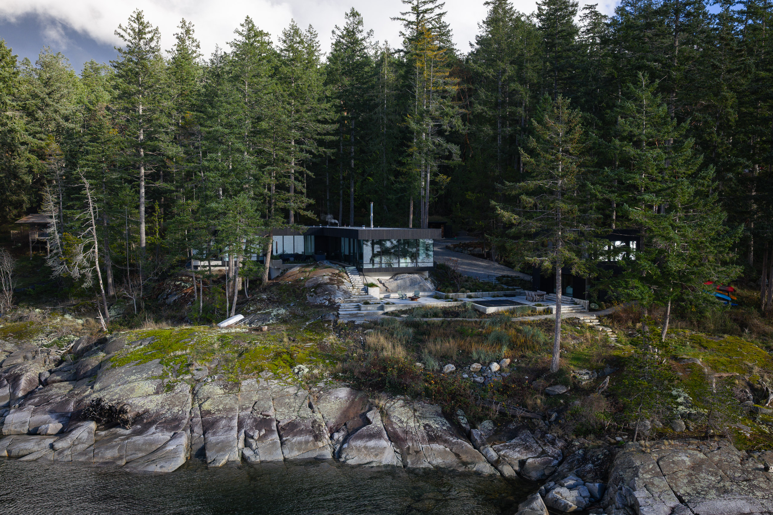 This residence, designed by architect Michel Laflamme, who refined his craft under Canadian modernist Arthur Erickson, stands on a dramatic granite outcrop overlooking the Salish Sea. Created for connection with nature and wellness, this quiet refuge is nestled in the bedrock, preserving the unique character of the landscape as it shapes a contemporary retreat.