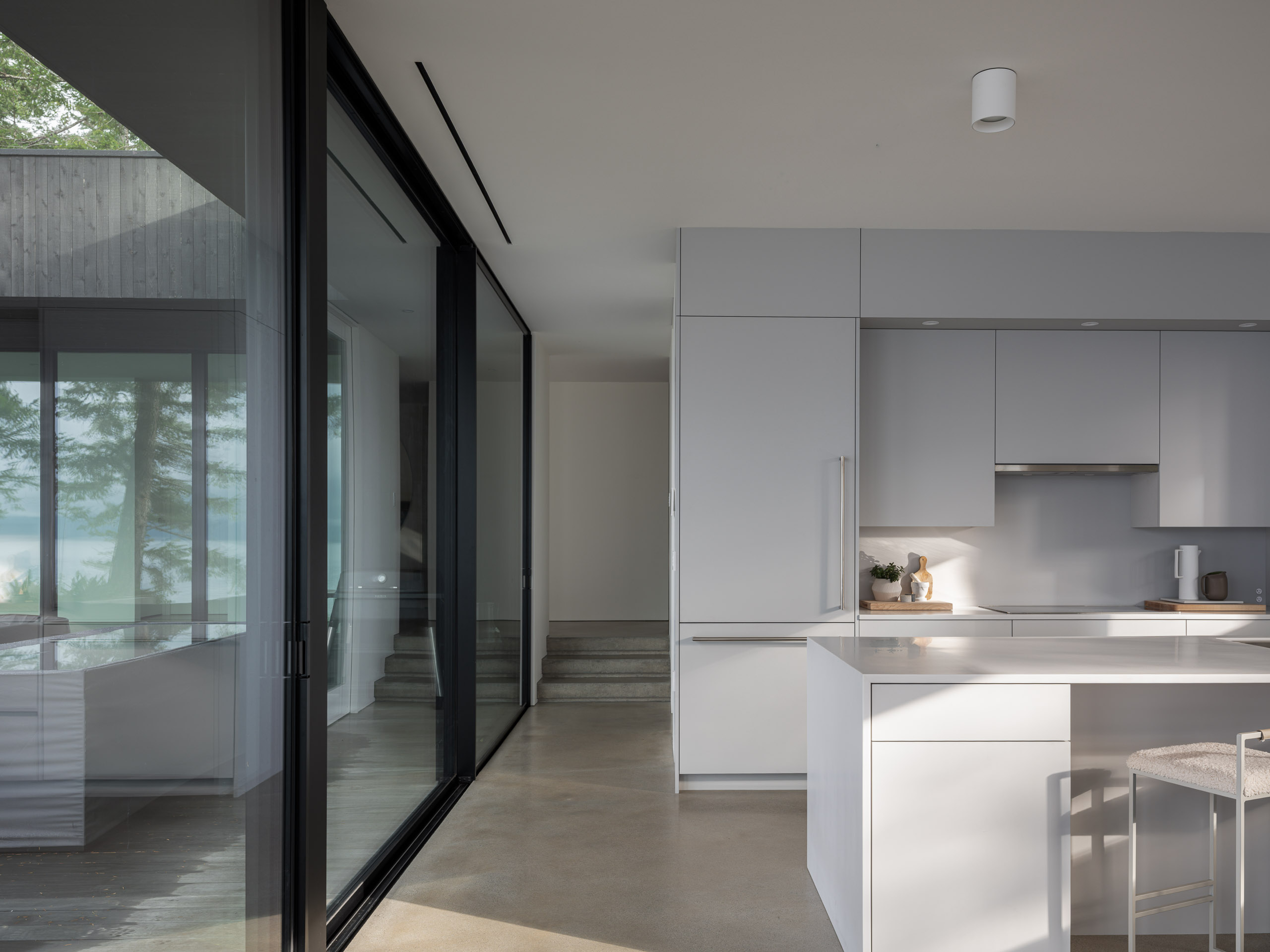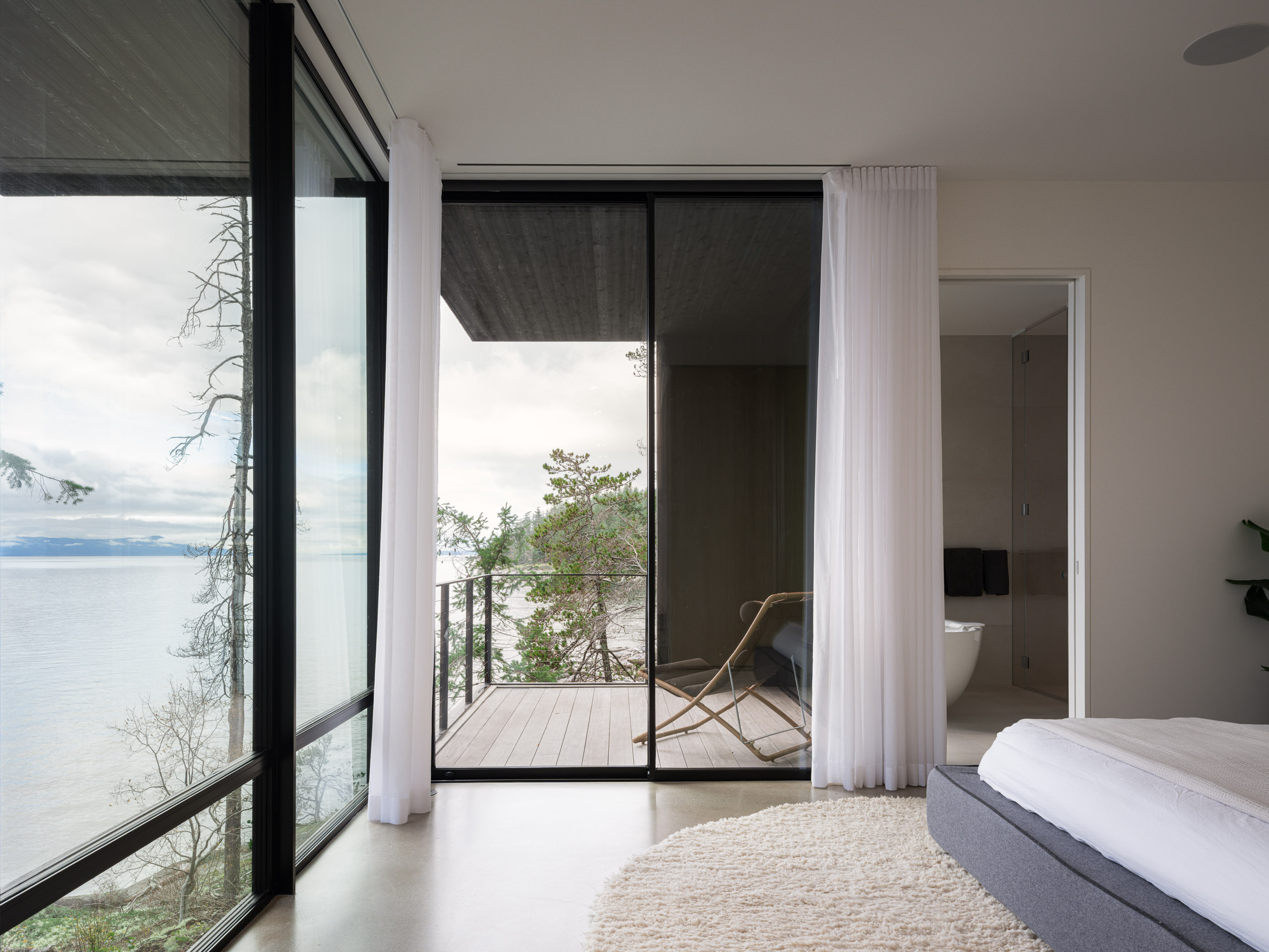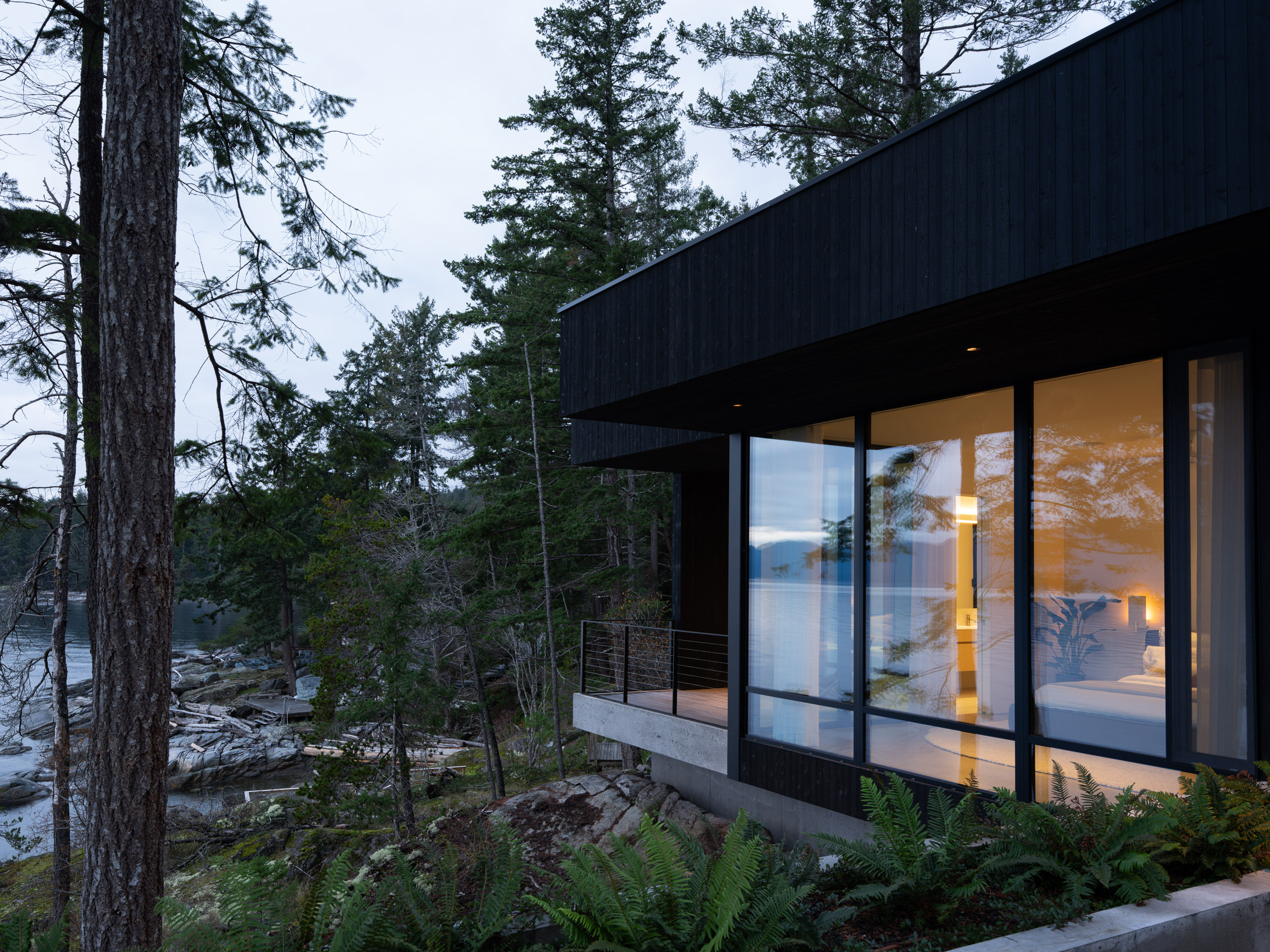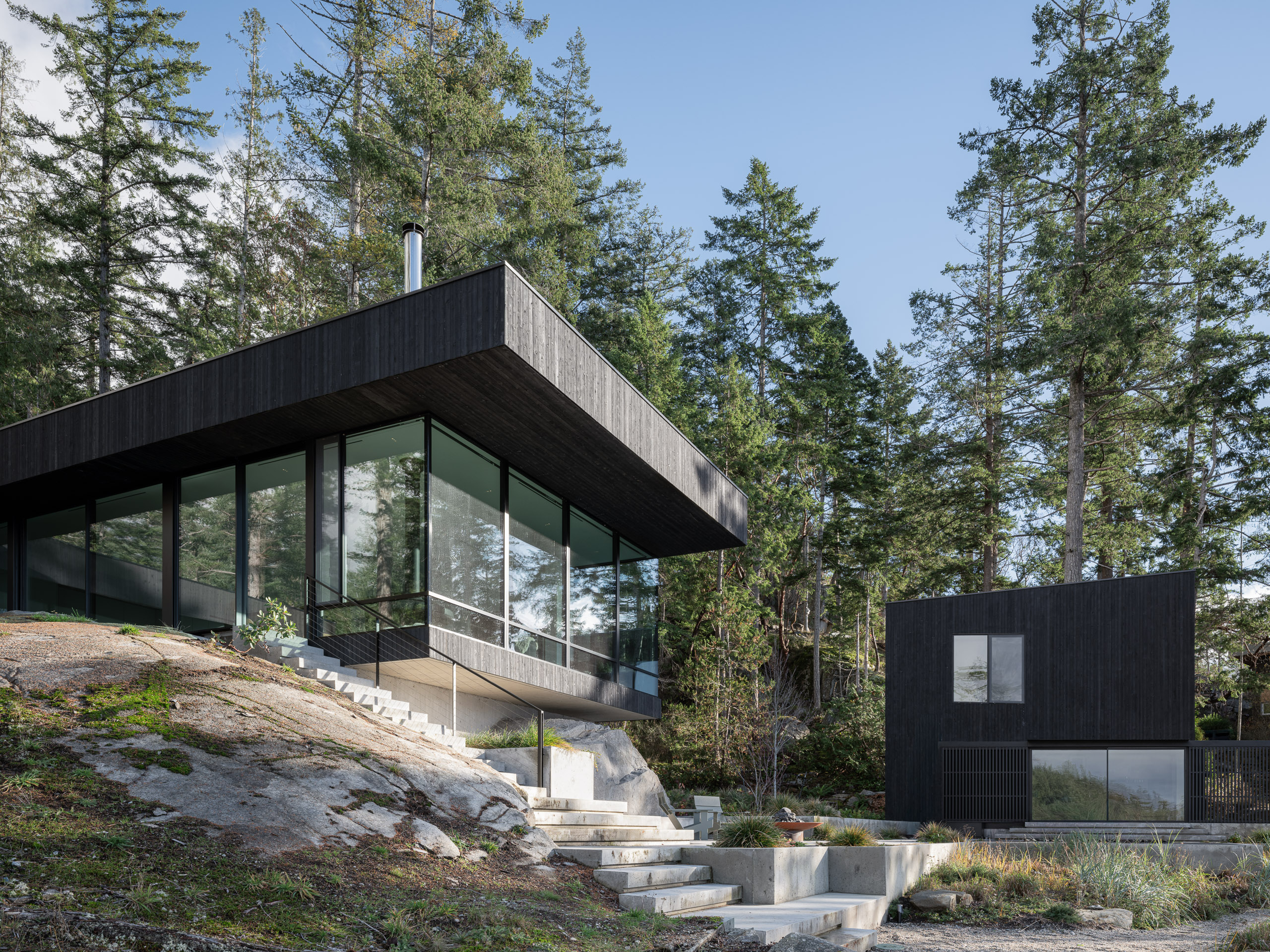 This residence, designed by architect Michel Laflamme, who refined his craft under Canadian modernist Arthur Erickson, stands on a dramatic granite outcrop overlooking the Salish Sea. Created for connection with nature and wellness, this quiet refuge is nestled in the bedrock, preserving the unique character of the landscape as it shapes a contemporary retreat.