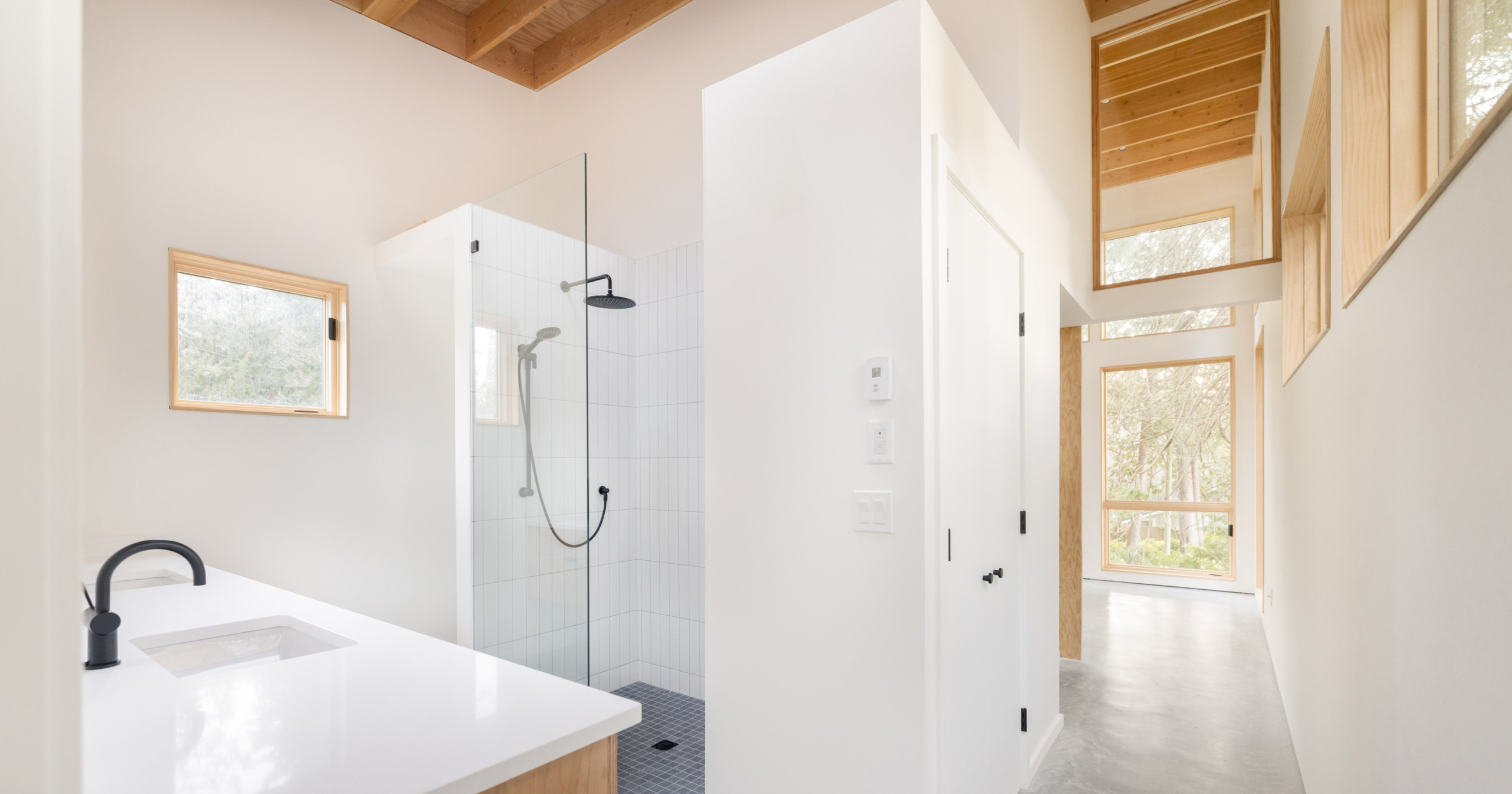 This unconventional Roberts Creek residence by architect Scott Keck gives the homeowners a space of their own among the trees, and a water view. Despite the design and distance challenges—the clients lived two ferry rides away—everyone stayed closely connected to the process through our cloud-based software and delivered a unique, inspired build.