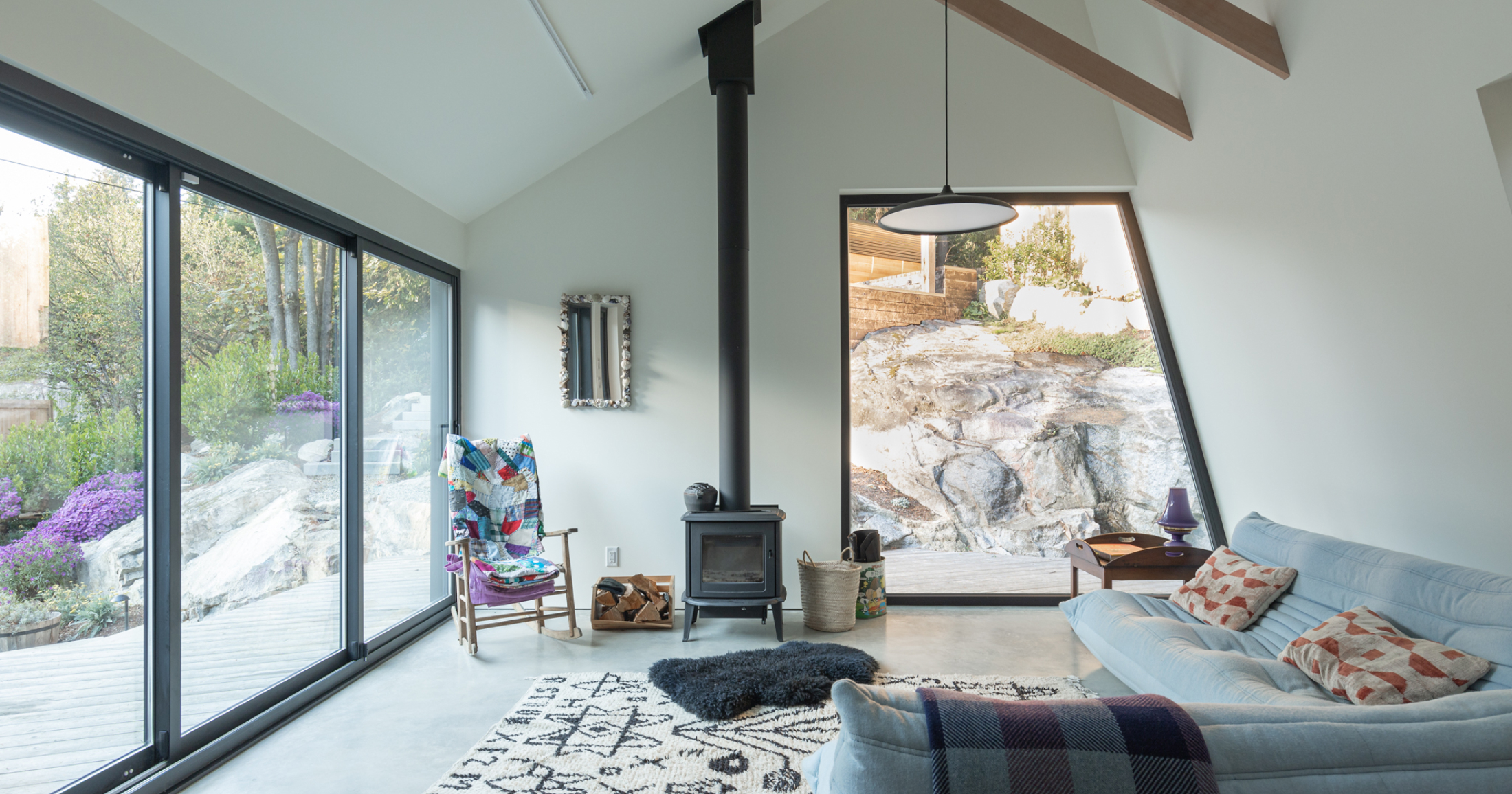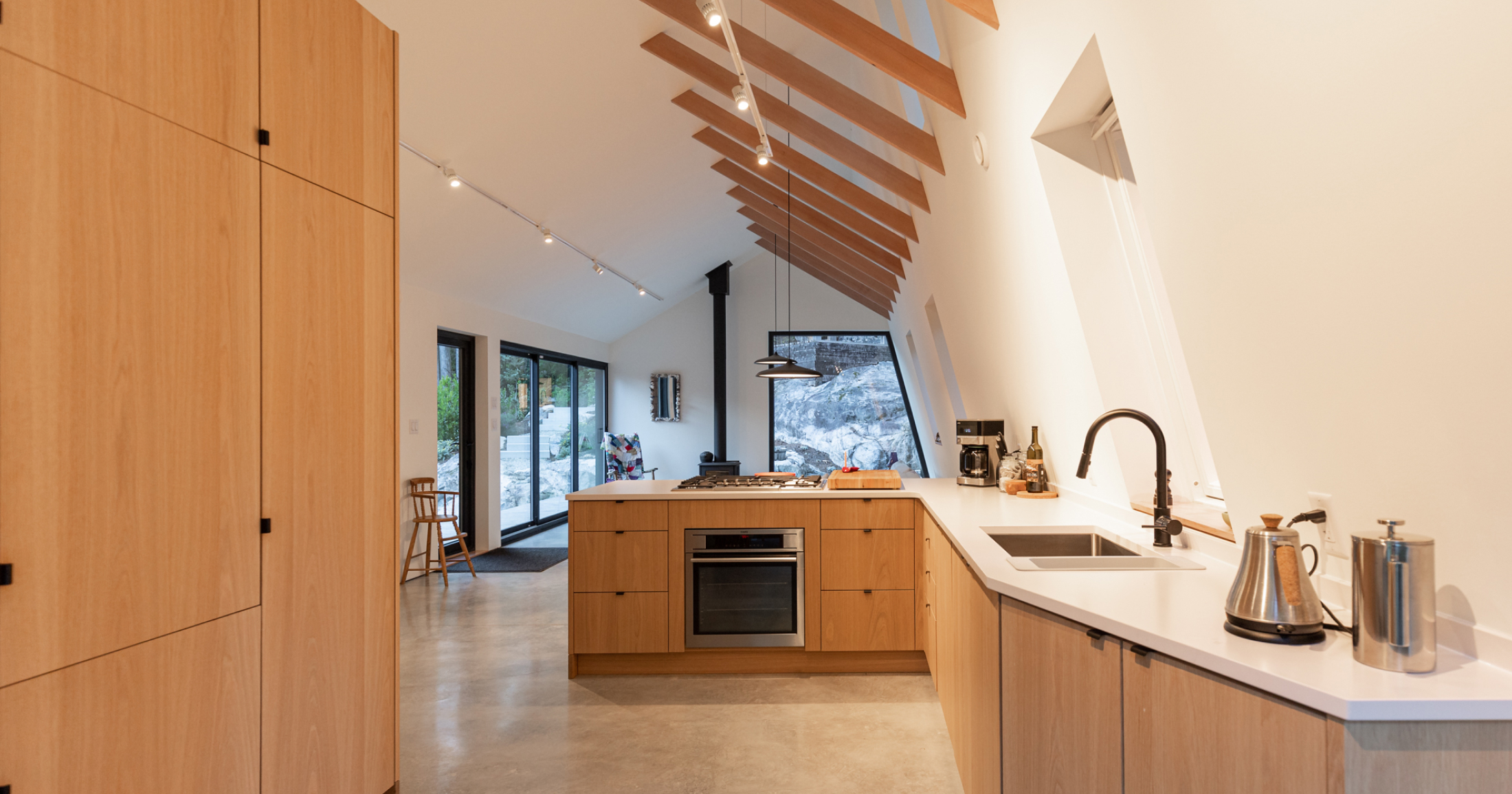 Creativity takes centre stage for this structure, located in Roberts Creek—a place where creative individuals have long gathered. We were thrilled to collaborate with architect Dimitri Koubatis in the creation of what can be described as a shelter for inspiration. While resting in the “Heart of the Creek“, the M-frame form is carefully sited to connect a raw natural landscape with refined, yet comforting interiors. Large windows work double-duty to showcase the rugged rocks outside while also allowing light and form to flow freely within. The result is an elevated sense of place that weaves together art, nature, and creative design.