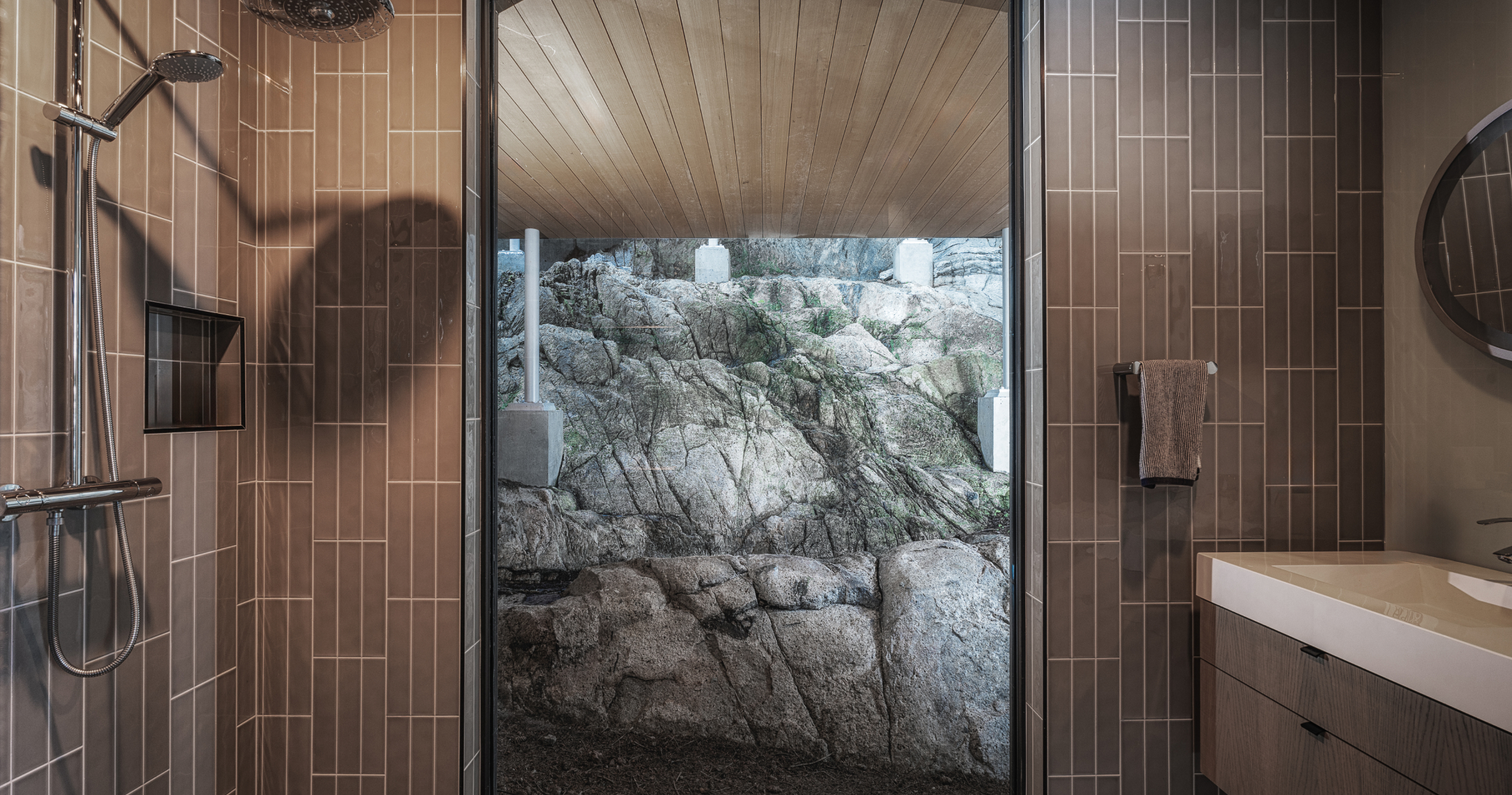 The renovation retained the original footprint while adding an enclosed glass conservatory with a cozy gas fireplace to create a sense of warmth as well as a connection to nature. The roof pitch was elevated on the waterfront side, transforming into a striking butterfly roof that pivots on one of the home’s exposed beams. Strategic tapered overhangs were introduced to provide seasonal shading, fine-tuning solar heat gain throughout the year. The enhanced building envelope, featuring advanced insulation and high-performance windows, minimizes energy requirements and ensures a consistently comfortable interior, even in extreme weather. Clean, contemporary lines and finishes frame the sweeping views, allowing the landscape to take center stage, and a minimalist layout blends sustainable design with timeless coastal style.